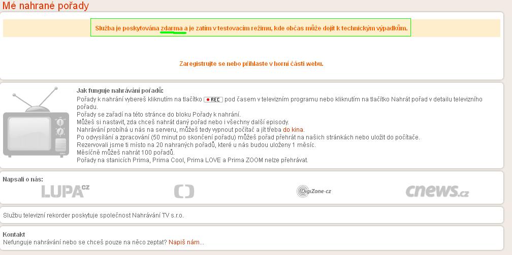 No neváhal jsem ani vteřinu a vyzkoušel jsem to. Jenže když jsem si chtěl nahraný pořad stáhnout tak mi vyskočila bílá stránka 404.