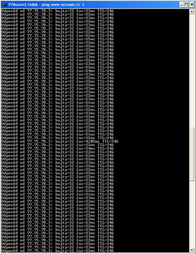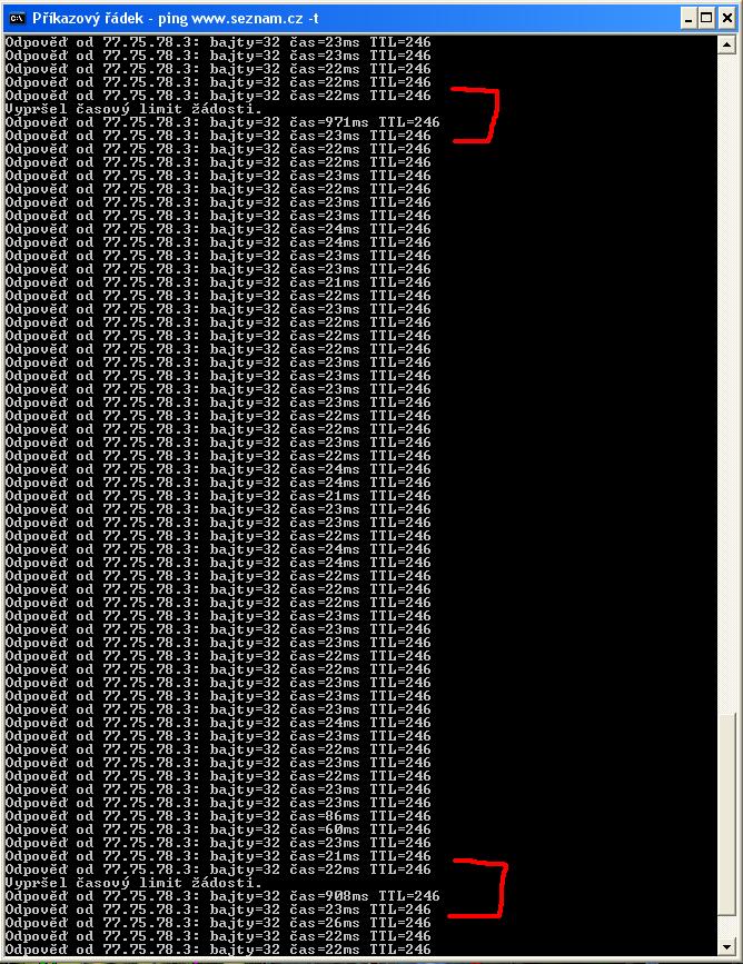 Ahoj, chtěl bych poprosit o radu, pokud někdo má/měl podobné zkušenosti s připojením. U internetu od O2 se začal vyskytovat problém s odezvou, kdy v průměru ping okolo 23ms vyletí bez problému až na 4 000ms a klesne zase zpátky na 23ms během pár vteřin. U načítání videa či filmu to člověk ani nepozná, ale například při hraní online her je to citelně znát. Samozřejmě je možné, že chyba může být v kabelech, modemu nebo i počítači, nikoli u poskytovatele. Počítač jsem projel antivirem a nic se neobjevilo. Z wi-fi modemu, který jsme dostali v rámci služby internet a tv od O2, jdou kabely rovnou do počítače a televize. Internet je tedy veden přes pevnou linku a ne pomocí antény. Konkrétně se jedná o O2 Internet Optimal Plus 20/2.