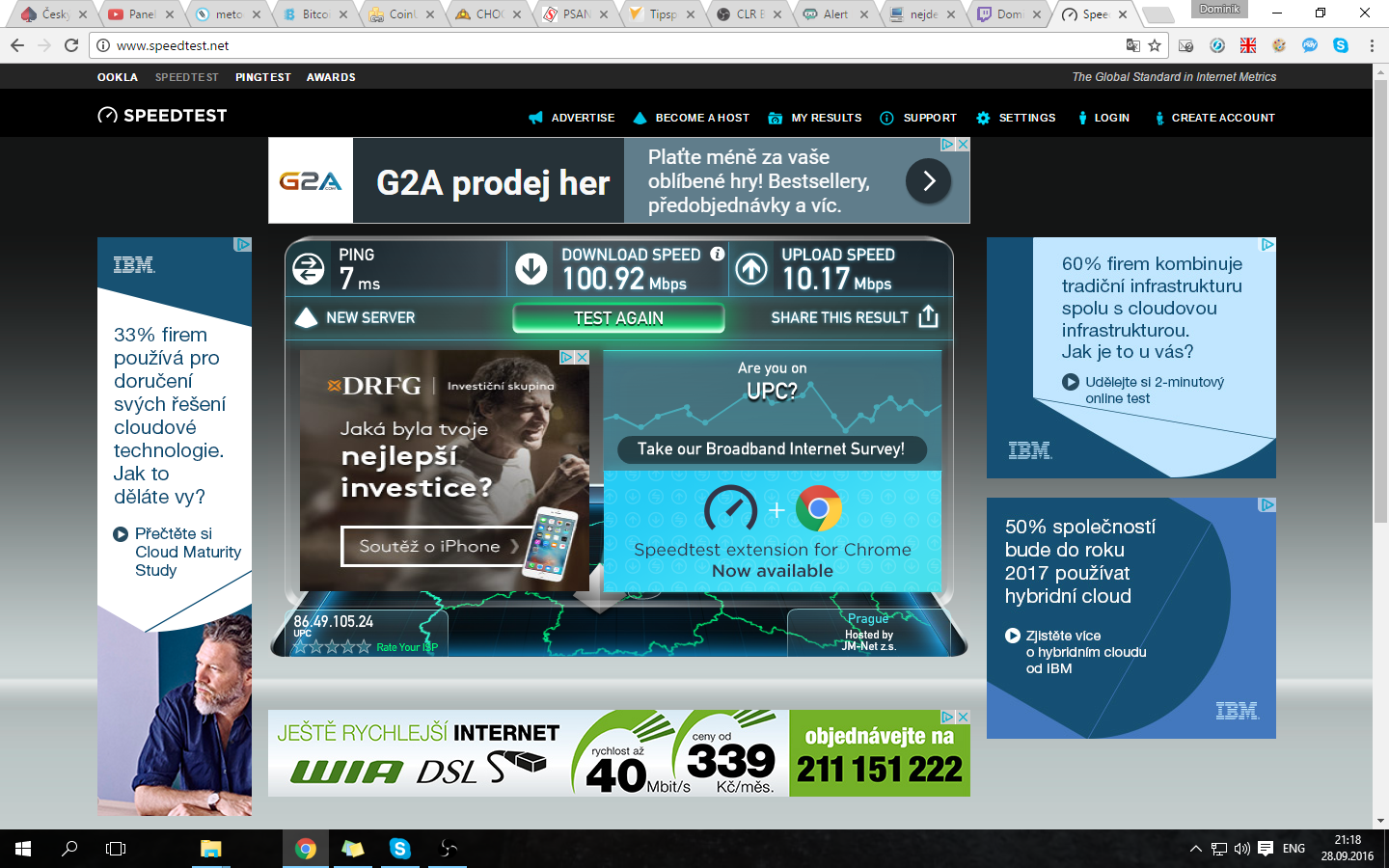 Těžkoby.. zašli mi specifikace internetu neboli screen ze stránky speedtest.net a poté zašli specifikace počítače.