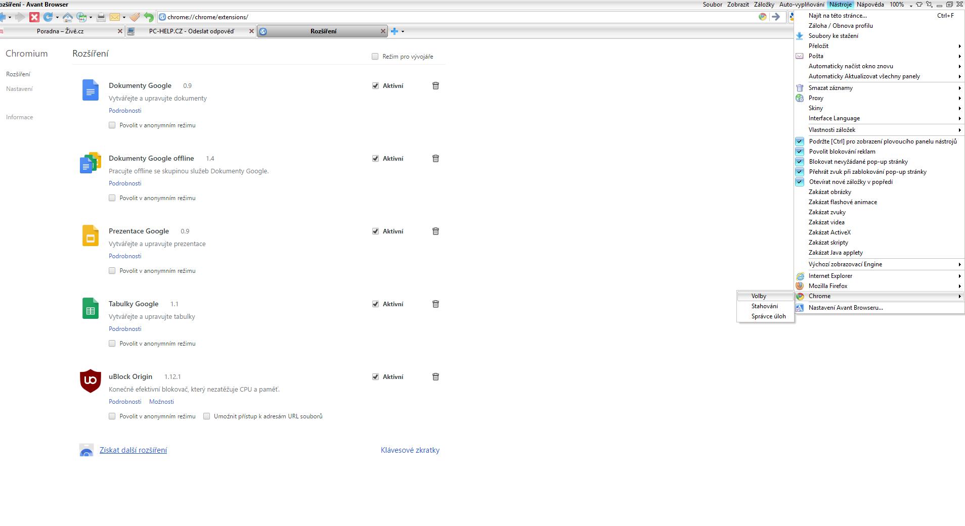 Už jsem chrome odinstalovala, znovu nainstalovala, ale problém trvá.