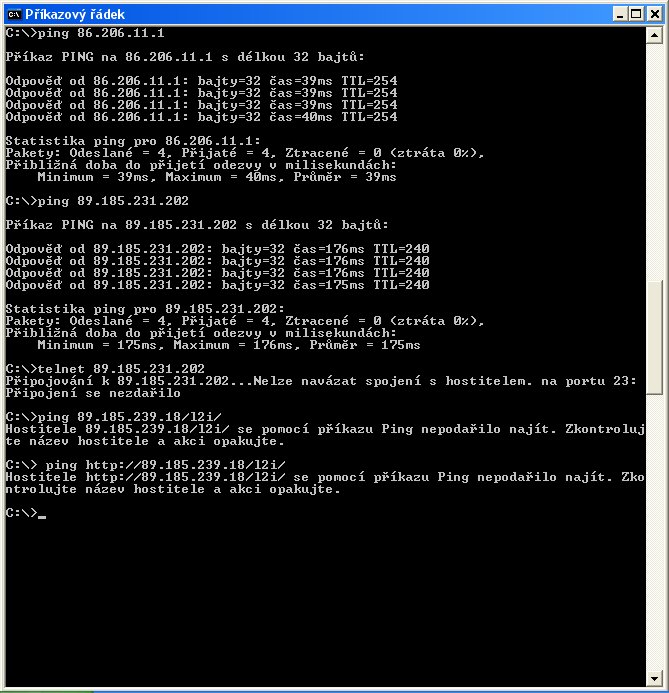po zkouskach ping_u na serve neni odezva a hlasi mi to 100% ztartu... pri trasovani zkoncim u poskytovatele mista v praze kde maji majjitele hraciho servru pronajate misto. do prahy ping funguje viz obr.