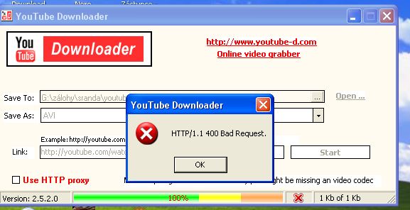 Přesně tak. 400 je chybová hláška pro chybějící soubor. Zkus překontrolovat odkaz na video, které chceš stáhnout.