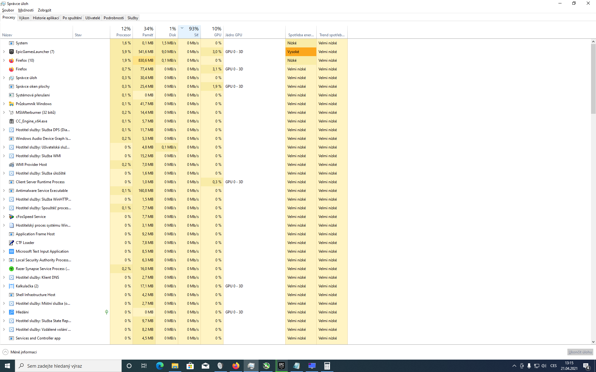 Správce úloh - u aplikací se nezobrazuje "spotřeba" internetu