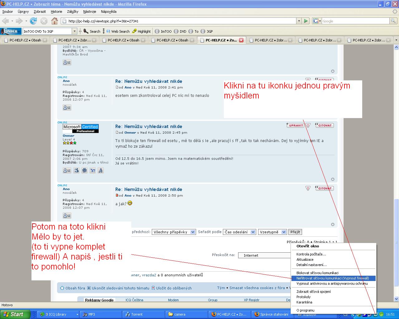 mám FF IE Operu a nejde to ani v jednom internet a email funguje , firewall eset smart security, a v nastaveni prohlizece sem nic nemenil zaclo to delat zniceho nic , ani na imageshack mi nejdou pridavat obrazky , zdá se ze kdyz kliknu na jakekoliv tlacitko , ktere ma odkazovat jinam tak mi prohlizec zamrzne, krome fora