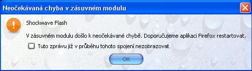 V zásuvném modulu doško k neočekávané chybě. Doporučujeme aplikaci Firefox restartovat.