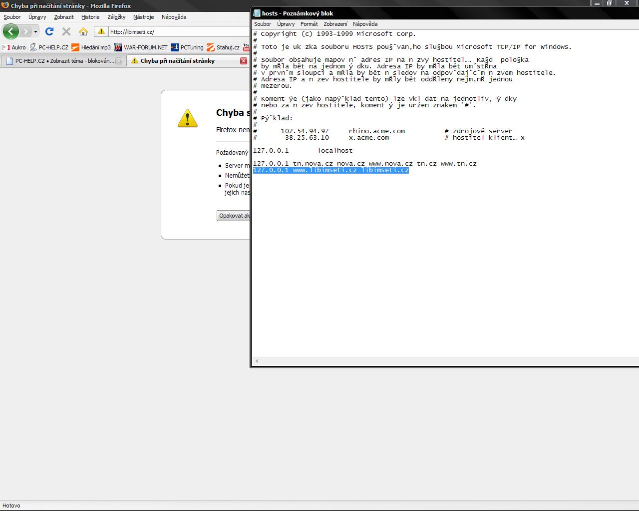 zkoušel sem to a např dej: 127.0.0.1 www.libimseti.cz libimseti.cz.....fuguje :-)