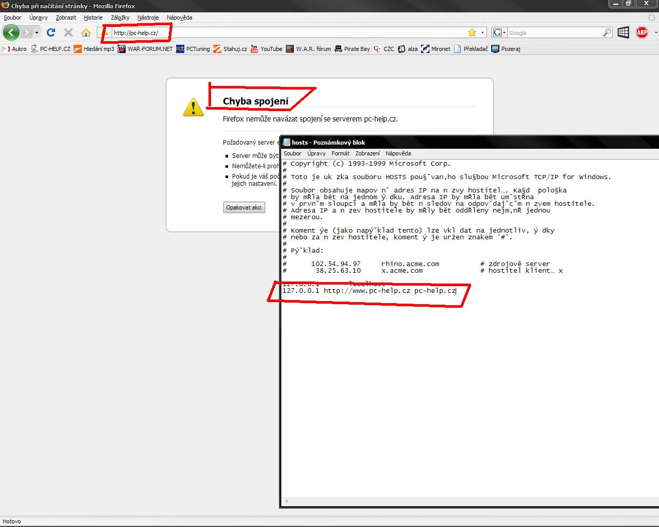 Přesně tak pokaždý tam dej 127.0.0.1 http://www.pc-help.cz pc-help.cz (například,prostě přesně tak jak to mam na screenu)