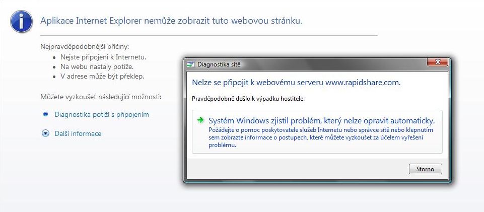 Pak v IE, kde pro změnu vyskočí toto okno + se nabídne diagnostika problému.