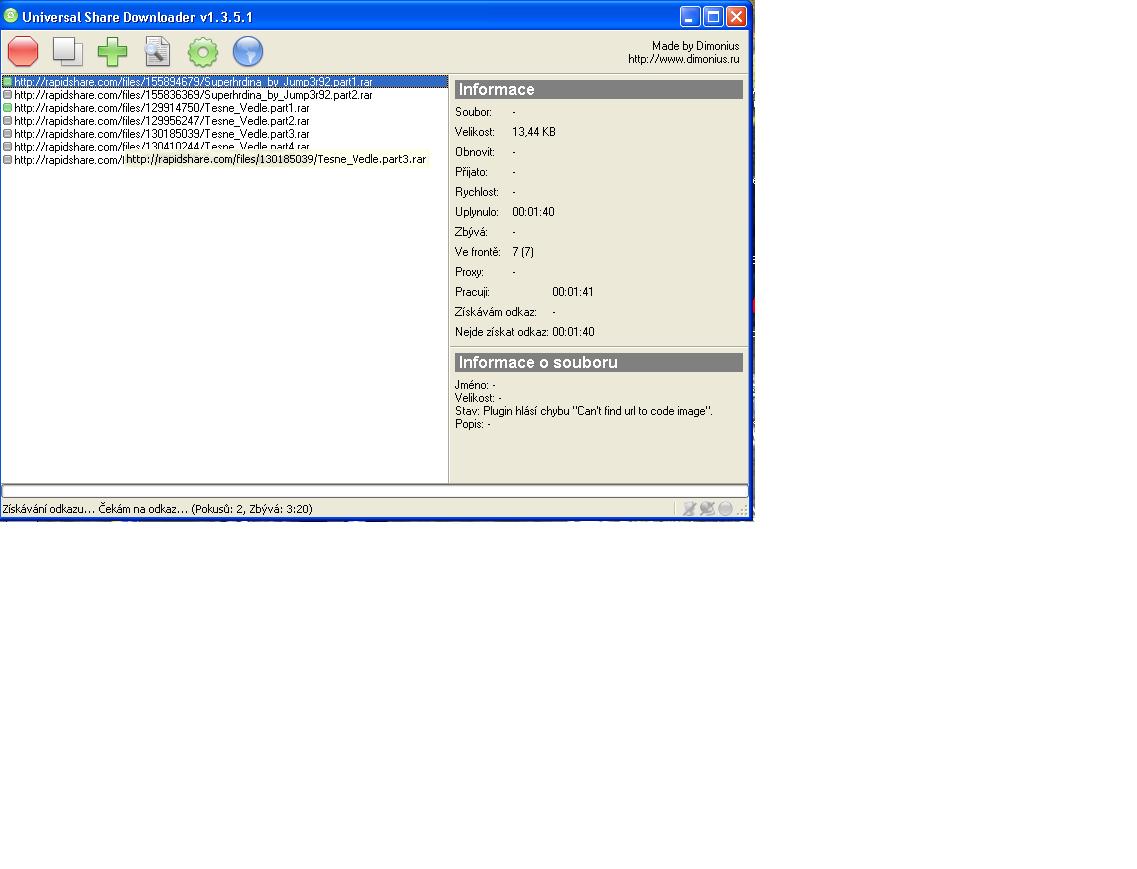 Ono by to taky chtělo číst, co program píše. Podle obrázku je to: Stav: plugin hlásí chybu: soubor neexistuje. Ještě nějaké dotazy? Stahuj něco, co existuje na serveru. Co už tam není, nestáhneš ani automaticky, ani ručně ...