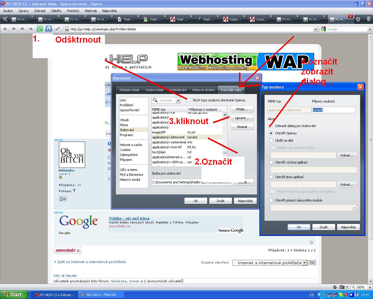 Čau, když chci něco stáhnout, tak si zapnu Operu a hledám, pak musím zkpírovat adresu do Exploreru a stáhnout torrent a zapnout v uTorrentu, protože když ten torrent stáhnu v Opeře, nedovolí to jen tak stáhnou, ale rovnou chce zahájit stahováni z torrentu, to je ale trochu komlikovaný a tak se ptám kde se to dá vypnou, jetli to jde, díky.