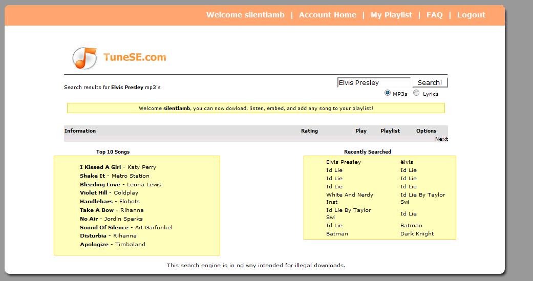Každopádně můžeš zkusit Clickster - program k vyhledávání mp3 z databáze asi 25-30 milionů, kde si je můžeš jen poslouchat, bez nutnosti stahování..a nepracuje to na principu p2p sítí