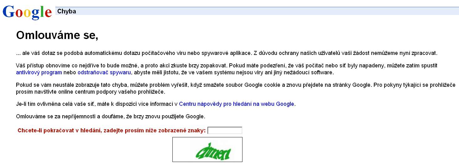 Viz příloha. Dělá mě to od pátku na dvou počítačích a třech prohlížečích. Nefunguje ani po zadání captcha.