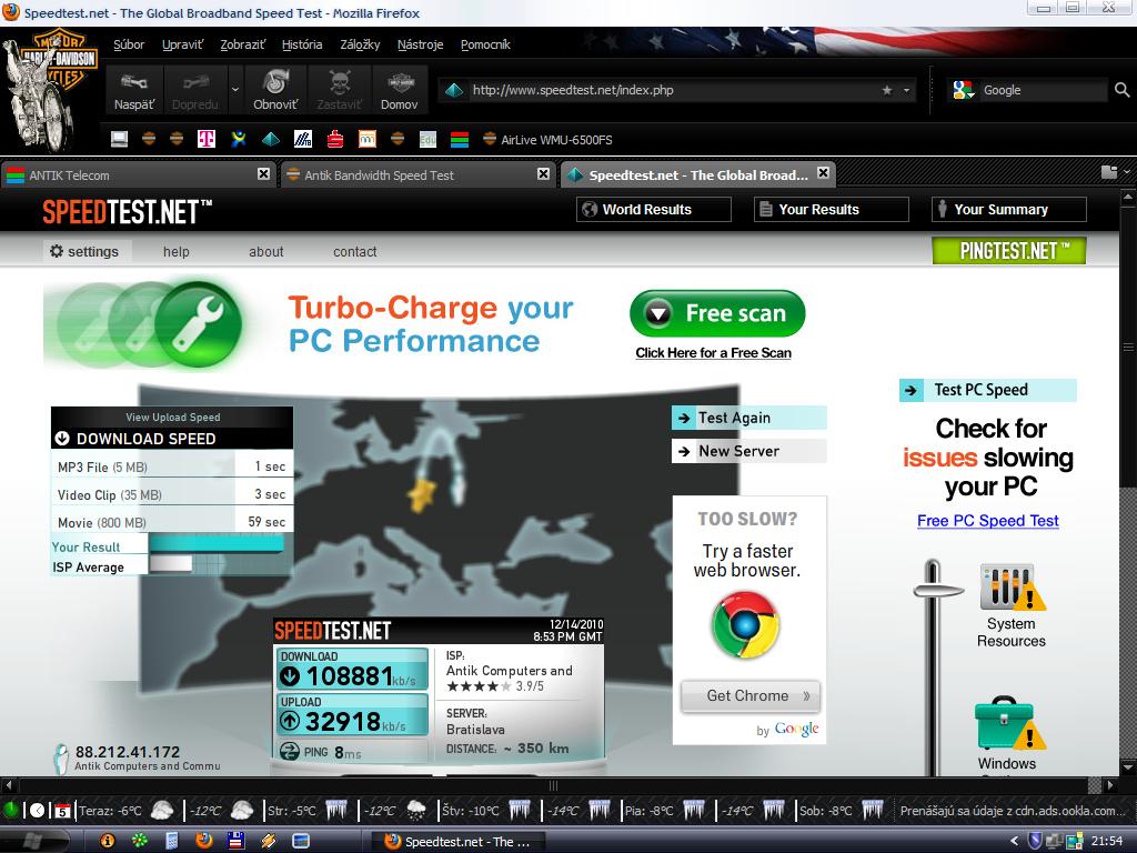 Dobrý deň. Je to normálne aby mi takto kolísala rýchlosť? Mám pripojenie 70 Mb, ak si merám rýchlosť tak som ju stále nameral nízku, ani nie polovičnú. Včera som si s vašou pomocou vyčistil komp a stale to bolo rovnaké. Tak som skušal zastaviť firewol a následne som zastavil aj Noda. bolo to to isté a rýchlosť klesala ešte viac ako je na priloženom screene. Rozhodol som sa, Nod som odinštaloval a .... neverím vlastným očiam viď screeny.