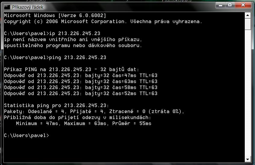 sorry ale fak tomu nerozumim.... kdyžtak řekni co přesně chceš... mám odeslané=4 přijaté=4 ztracené=0, minimum= 19 ms
