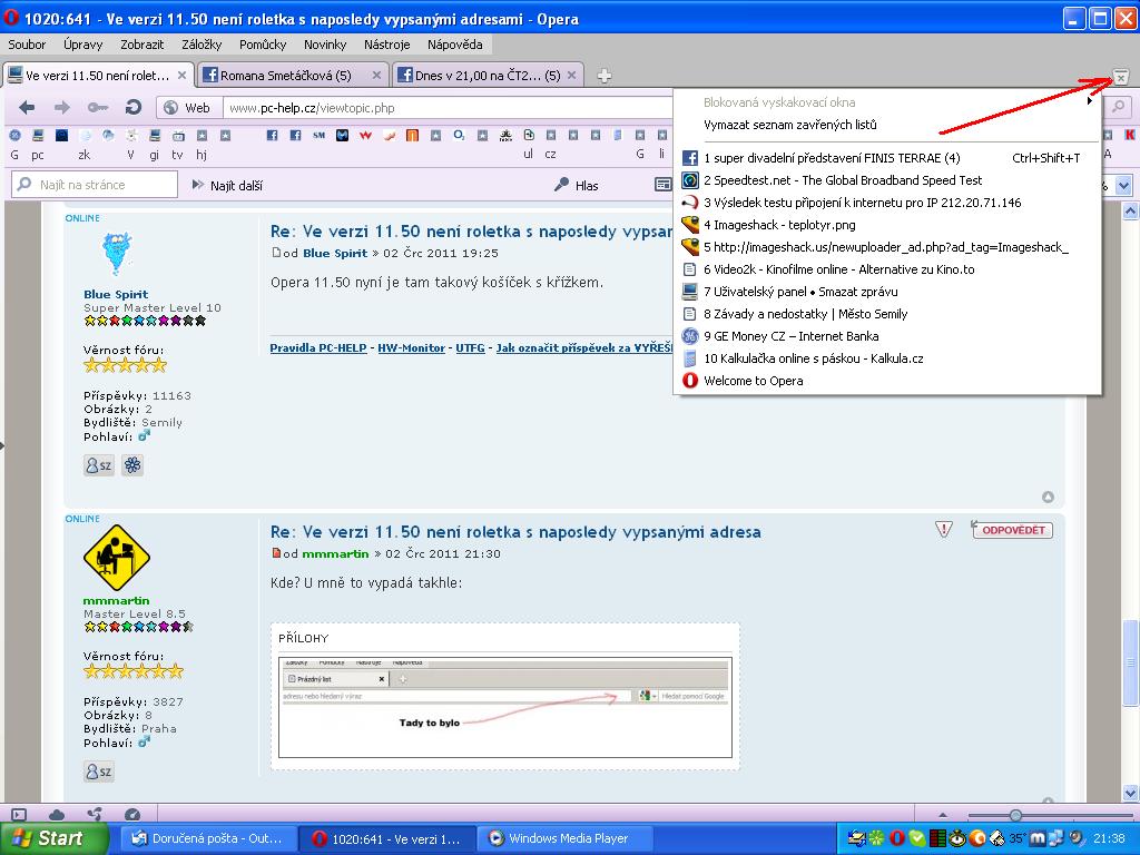 Opera 11.50 nyní je tam takový košíček s křížkem.