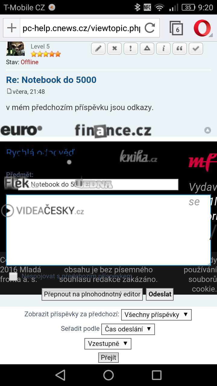 Jinak jedná se o Huawei P8 Lite (1280 x 720) a prohlížeč Opera Mobile.