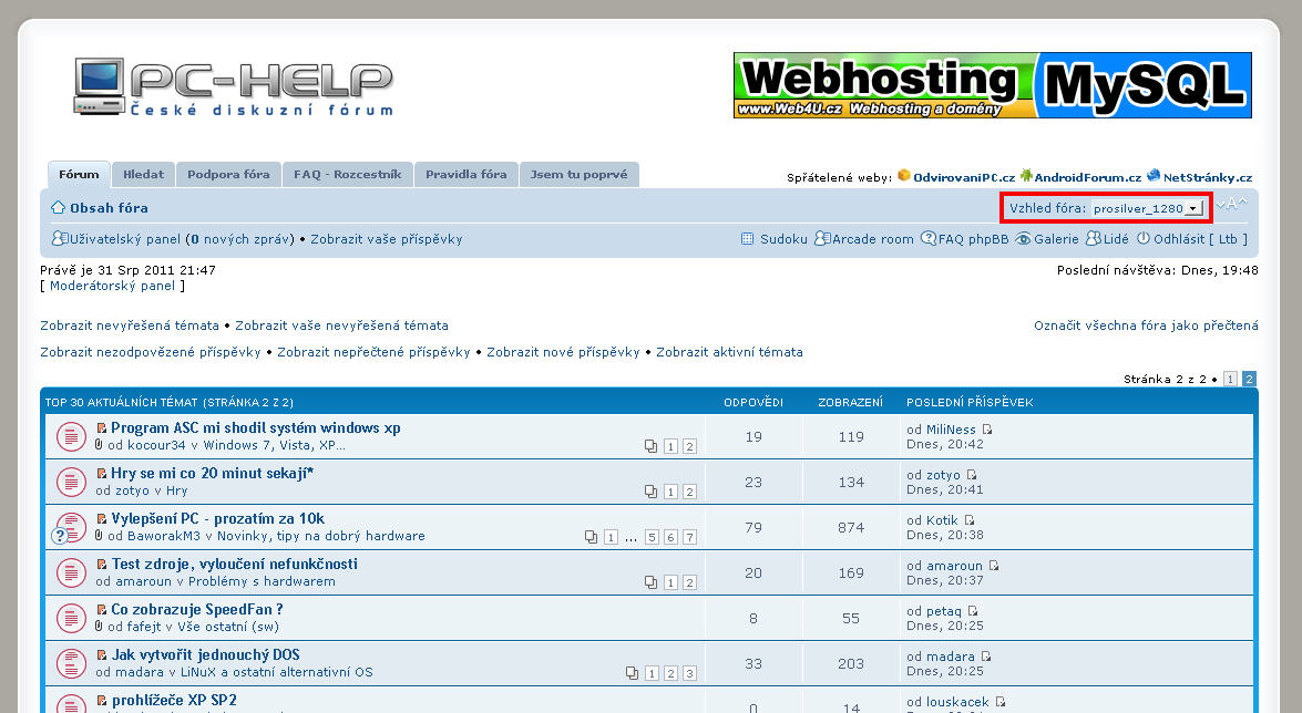 Dnes jsme do fóra implementovali nový MOD pro snadné přepínání vzhledu fóra.