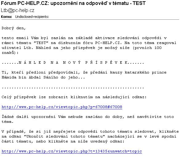 ) obsahuje informaci o vkladateli nového příspěvku + náhled na nový příspěvek (prvních 100 znaků) - více viz. screenshot níže.
