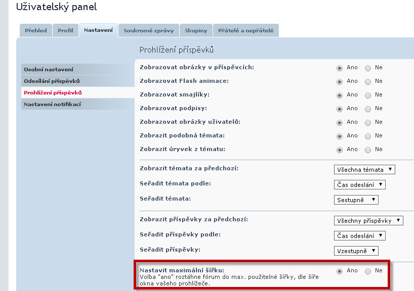 Pokud by ani tohle nestačilo a někdo by potřeboval styl širší, doporučuji zkombinovat s funkcí "Nastavit maximální šířku". Věřím, že s tímto bychom měli pokrýt většinu potřeb a přání pro zobrazení fóra ve světlém stylu.