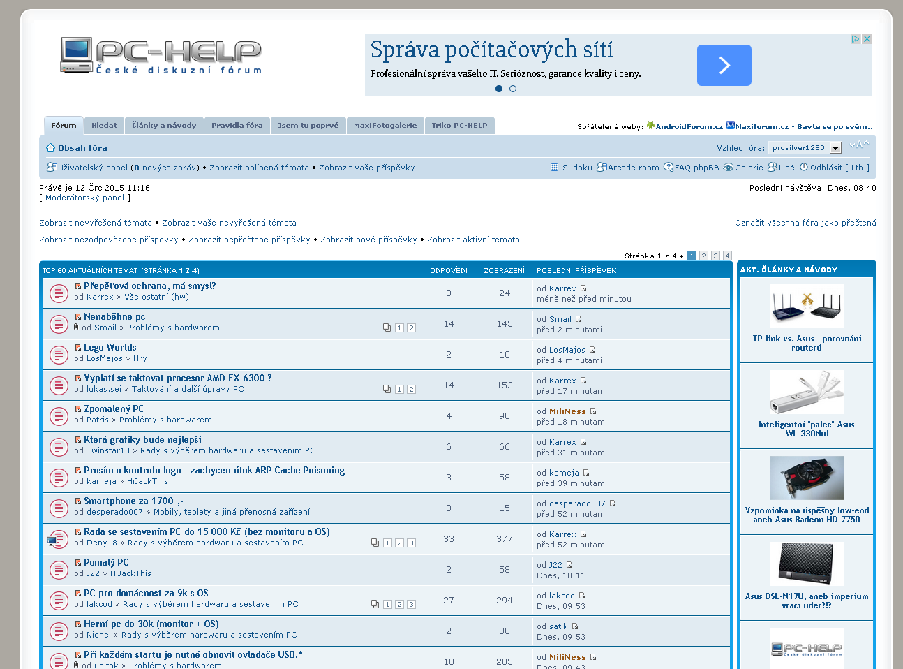 Bohužel je to věc názoru, to s těmi odkazy...jednomu sedí víc jedno, druhému druhé...mě osobně tam nesedí ten link "Označit všechna fóra jako přečtená", zkusím se ještě zamyslet nad tím, kam jinam ho dát... Co přesně ti připadá přeplácané? Já bych spíše řekl opak, že hlavička je v nové verzi jednodušší...X píše:Minulá podoba hlavičky fóra byla lepší a čistší, současná je přeplácaná. Nepotřebuji vytahovat po fóru volby, co už jsou v menu a nechápu lidi, co jsou líní i klikat. Menu mi nevadí z PC ani tabletu (dotykem).