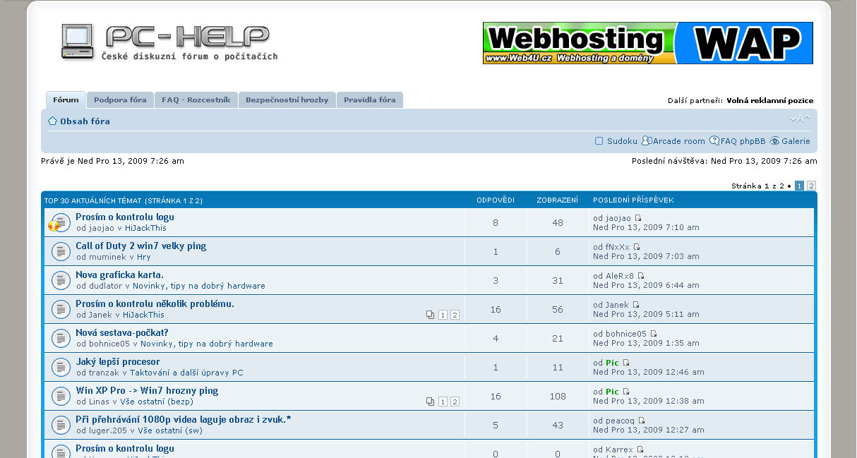 2007 ...rok 2007 byl v ledasčem zlomový. Jednak jsme rozšířili přehledovou tabulku z TOP20 na TOP30 aktuálních témat. Rovněž jsme do našeho loga přidali (dnes již rovněž legendární) ikonu PC. Nicméně co je asi nejdůležitější - získali jsme prvního dlouhodobějšího sponzora fóra. A ještě jedna zajímavá informace navíc - v té době nám dorazila první nabídka na odkoupení celého projektu PC-HELP od jedné nejmenované společnosti