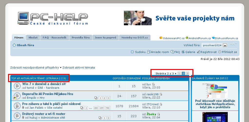 Došlo ke kosmetické úpravě TOPxx aktuálních témat, kdy jsme udělali z TOP30 aktuálních témat nově TOP45. Fórum žije(*), během dne jsou tak diskutovány desítky témat, další strana těch nejaktuálnějších by se proto mohla hodit ;-)