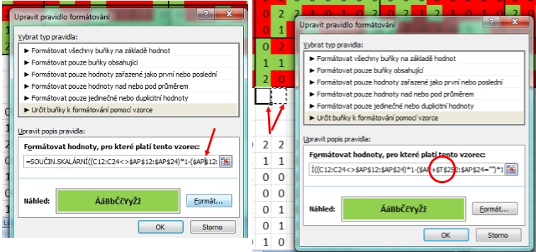Navíc, když jsem v buňce (s OK), kde je to podmíněné formátování nastavené, dám si správu pravidel a upravit pravidlo, tak když kliknu do řádku se vzorcem a chci šipkou sjet na konec, tak se pohybuje i kurzor v sešitu a ty buňky mi tam sprostě přidává a já nevím, jak se na ten konec toho dlouhého vzorce dostanu, sakra :-(