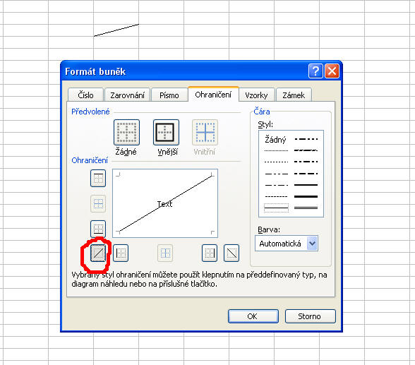 Re: Jak v excelu udělat úhlopříčky přes buňku, ve které je t