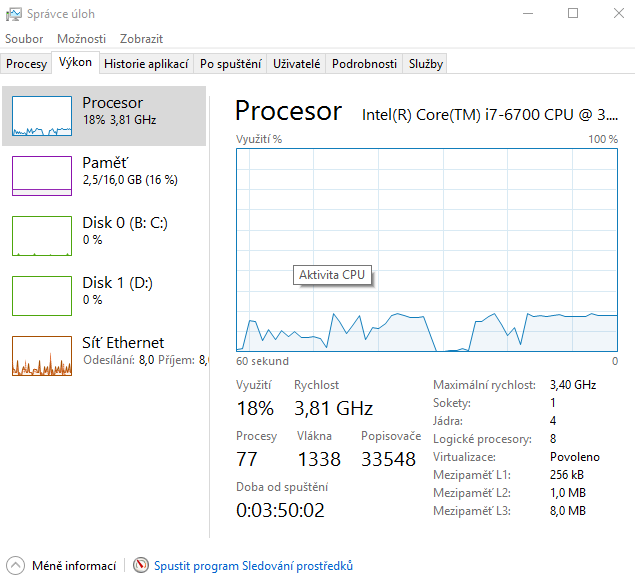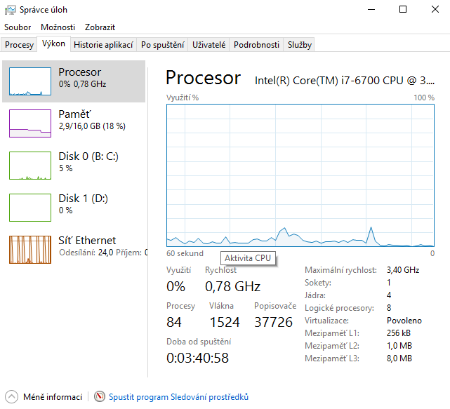 Vyfoť správce úloh v klidu a následně i ve vytížení a hoď to sem.