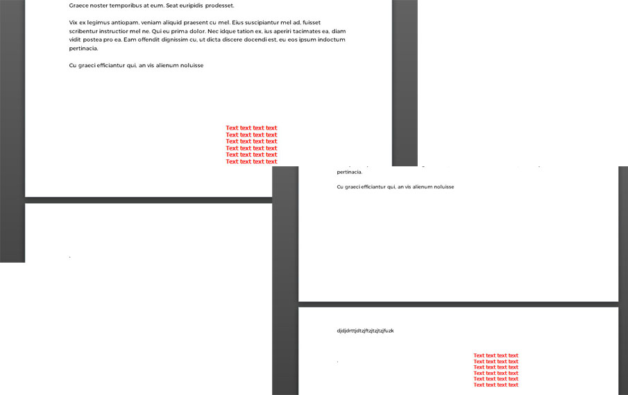 Na to aby ste dosiahli stránky, iné ukotvené texty, alebo bez nich, je možnosť použiť sekcie - vo vzhľade vložiť prechod na novú stranu z časti sekcií.