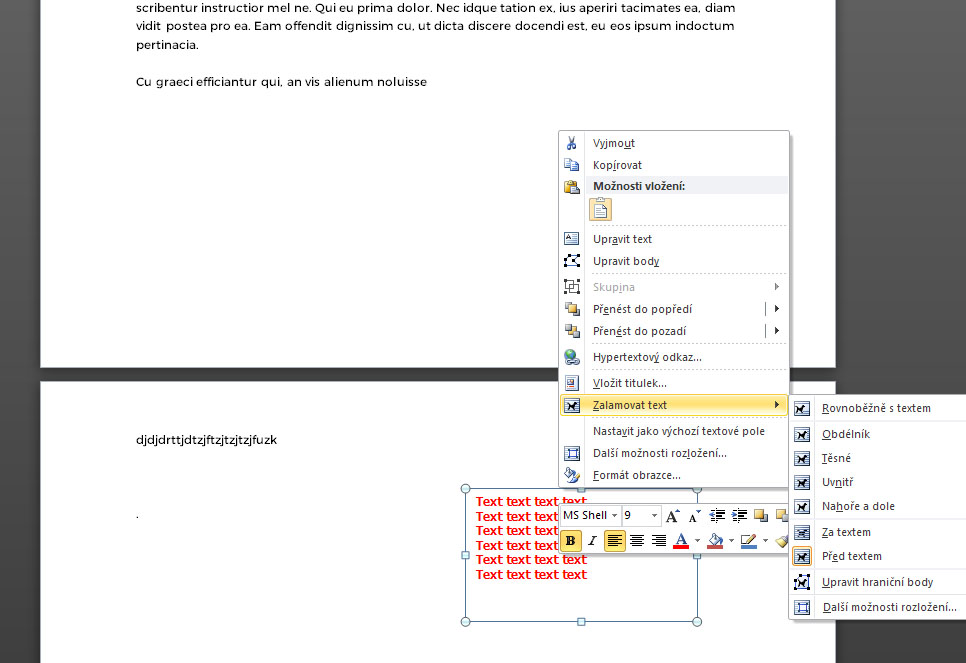 Pro někoho možná banální věc, ale já nemůžu nijak přijít na to, jak ukotvit text, nebo objekt na stránce, který je pod kurzorem. T.j. mám část textu, kterou potřebuji mít pořád na stejném místě (něco jako zápatí, ale ne na každé stránce), aby se to nehnulo dolů při psaní nad. Viz přiložené sshoty. Když zvolím obtékání textu jakkoliv, před, za, stejně se při psaní nahoře pak ta dolní část posouvá. Jestli to je v nějakém manuálu pro Word, nevím, jak se to dá hledat. Natož najít. "Obtékání textu" to jaksi neřeší.