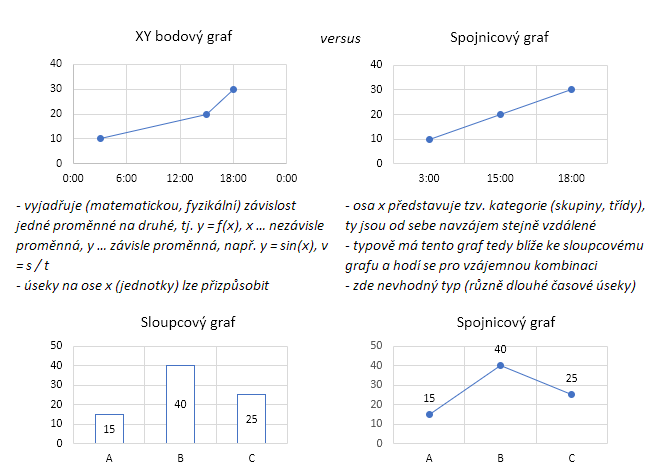 To je pro mě nová informace, ale nějak nevím jak ji uchopit (moc tomu nerozumím). Mám tomu rozumět tak, že spojnicový graf neumožňuje zobrazit na ose x nezávislou proměnnou?
