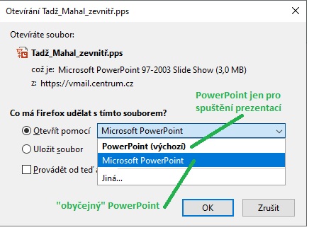Power point - automatické spouštění prezentace při otevření ze složky Vyřešeno