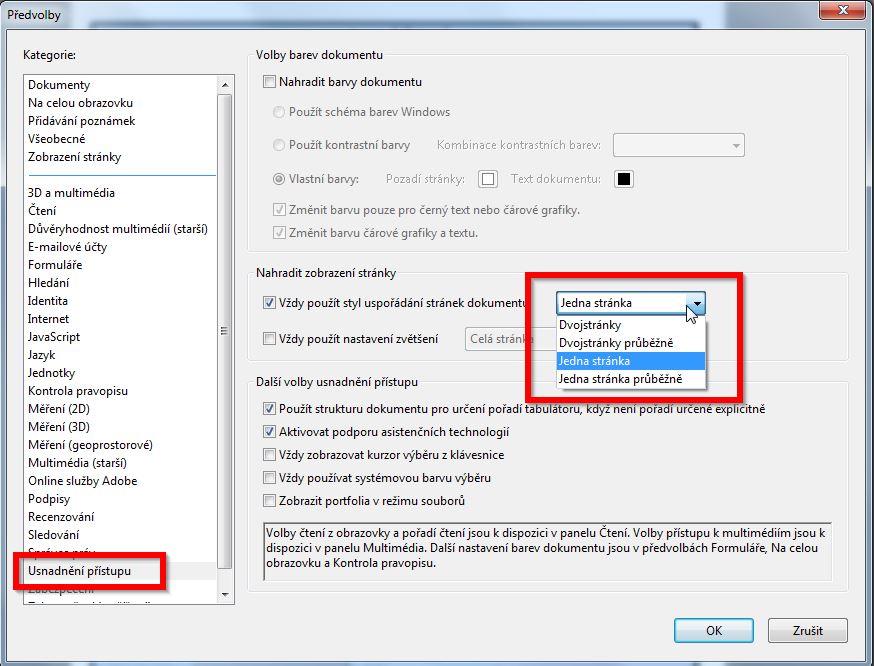 To nastaveni usnadneni prebije nastaveni v dokumentu.