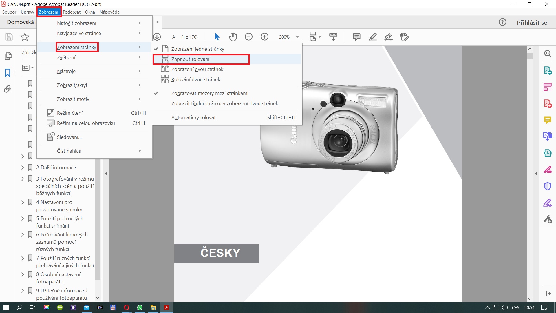 Dá se někde v Adobe Acrobat Reader DC nastavit, aby položka menu Zobrazení > Zobrazení stránky > Zapnout rolování byla aktivní po startu aplikace? Marně hledám.