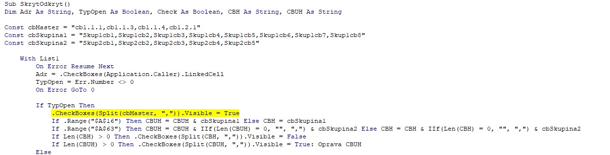 .CheckBoxes(Split(cbMaster, ",")).Visible = True viz obrázek