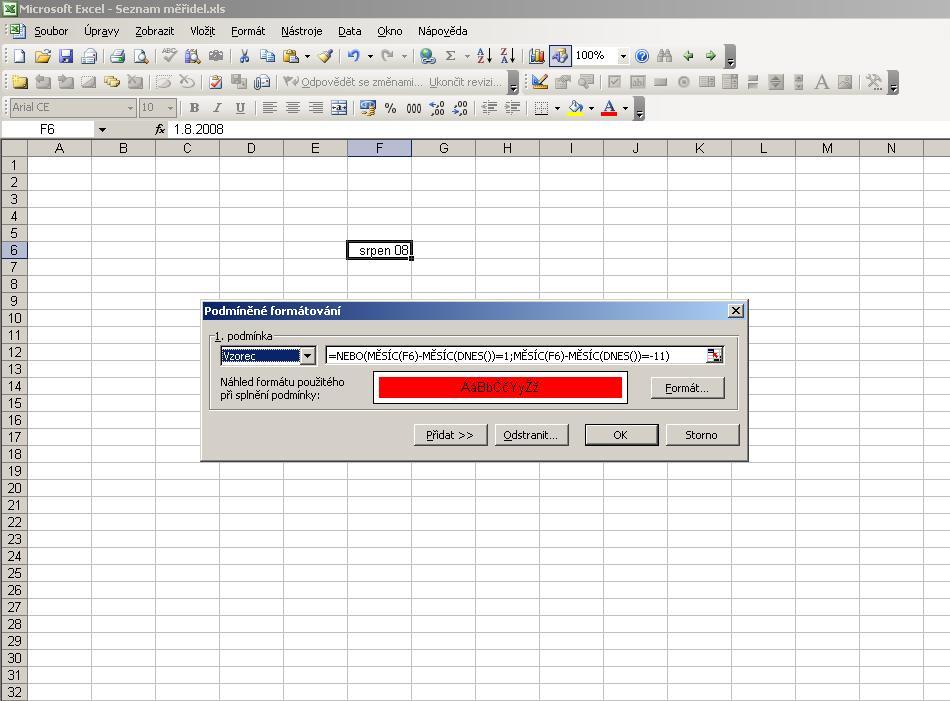 V priloze je v F6 srpnove datum, takze podminka neni splnena, zmena barvy se nekona - ke zmene "doslo" v cervenci 08, dnes je jiz po.v buňce je datum září 09 a já bych chtěl, aby v srpnu 09 buňka změnila barvu