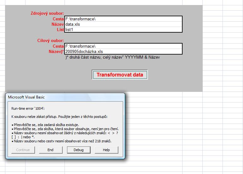 Prilozeny soubor muzes v pripade potreby prevest na soubor *.xlsm - otevrit Transf.xls v Excelu 2007 a pak ulozit jako Transf.xlsm, nemely by byt problemy.