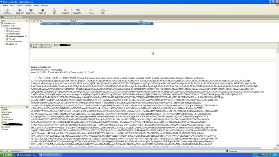 Posílám obrázek co mi někdy přijde za poštu na Outlook Express:Pokud si tu počtu přečtu přímo na stránkách kde mám adresu/v tomhle případě Volný/tak jde normálně přečíst-Tedy ve formátu html.