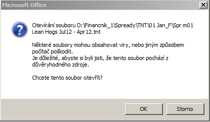 Ve Wordu když hypertextovým odkazem otevíram soubor *.tnt tak se objeví vždy toto hlášení v příloze. Jak to varování můžu vypnout? Prošel jsem centrum zabezpečení a nic jsem nenašel. Umístění souboru je nastaveno jako důvěryhodné. (Když ale otevírám například soubor *.xlsm tak se to otevře bez varování)