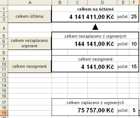 4. Potřeboval bych vytvořit ještě jedno tlačítko (viz printscreen) CELKEM ZAPLACENO Z URGOVANÝCH +počet (hodnoty ve sloupci ZAPLACENO se statusem A) a pak ještě jedno tlačítko CELKEM ZAPLACENO Z NEURGOVANÝCH + počet (hodnoty ve sloucpi ZAPLACENO se statusem N)