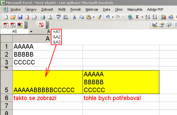 Re: Excel: Víceřádkový text v buňce pomocí vzorce