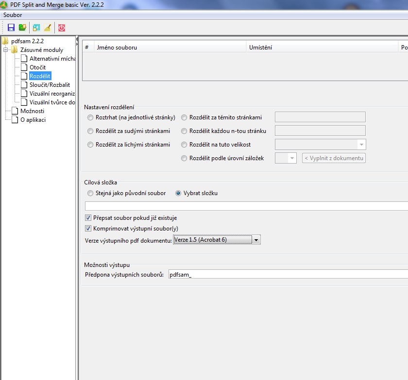 Cilem eni rozdelit PDF, ale rozdelit ho podle preedefinovaneho textoveho retezce v dokumentu, coz prakticky zadna aplikace z tech co je zdarma neumi. A nejsem si jist ze to umi plna verze Acrobatu. Ono to nebude uplne trivialni, protoze se pri tom rozhodi cela strankova struktura dokumentu (obrazky najednou mezi strankami a pod.)