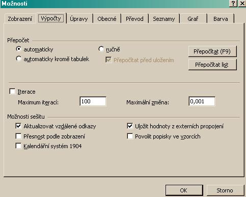 Tohle vůbec nevím, kde mám hledat. Pod souborem to nemám (Word2000). Máš na mysli nástroje-možnosti-výpočty? Ale ani tam nevím, co tam zakázat.