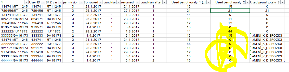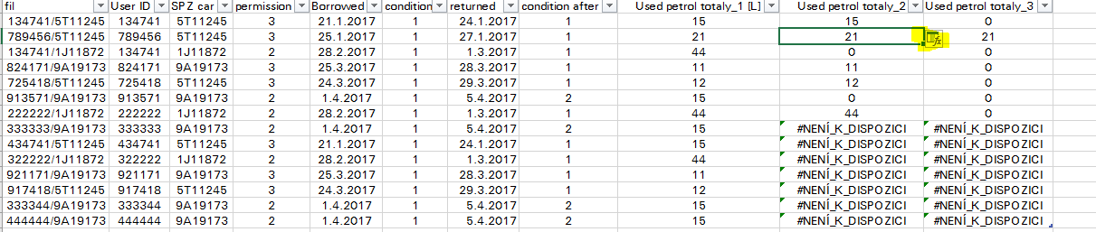 a kúsok pod tým sa načíta výsledok, kde treba opäť doplniť priradenie pre ďalšie stĺpce po 15