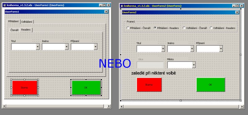 ad 2. V priloze na listu Uvod je pouze naznaceno, ze ma byt volana procedura Zaznam. Ovsem nijak neni naznaceno, zda i pro ostatni operace z prostredi listu (ovladaci prvky) nebo uzivatelskeho formulare. V priloze jsou vytvoreny formulare na listu (prihlaska, odhlaska), takze nejspise bude uvodni list obsahovat ovladaci prvky a pak bud prepinac jazykove mutace a tlacitka prihlaska a odhlaska nebo samostatna tlacitka pro jazykove mutace prihlasky a odhlasky.