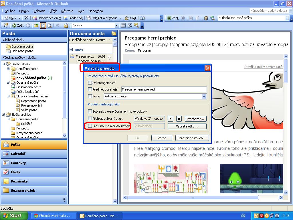 jde nějak nastavit, aby emaily od odesialtele xxxx@yyy.cz se přeposilala ihned do složky XYX