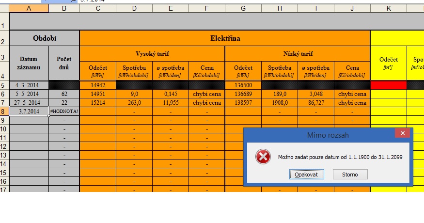 nedávno mi to zde někdo již opravil. Přidal jsem nová data a fungovalo to. Dneska mi to při zadání datumu píše mimo rozsah, ale datum je v uvedeném rozsahu.