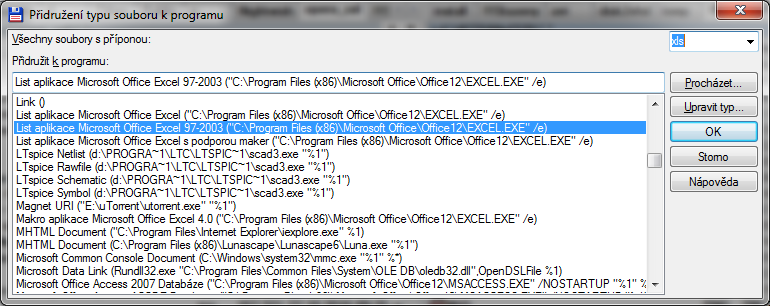 Zkusil bych zkontrolovat, zda je v pořádku přidružení programu k souboru. Lze to buď přes Ovládací Panely/Výchozí programy, nebo třeba v totalcommanderu (viz. obrázek).
