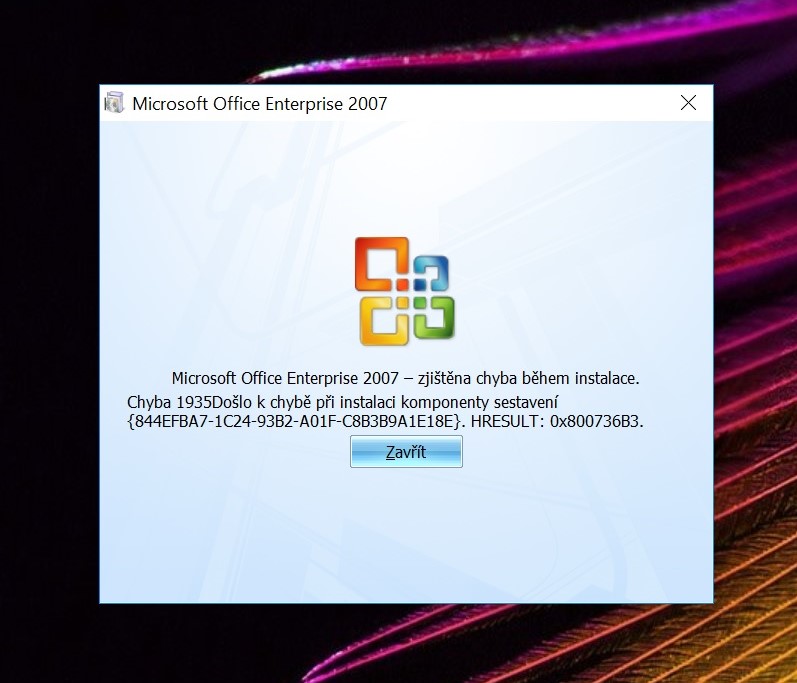 Chyba při instalaci MS Office Enterprise 2007